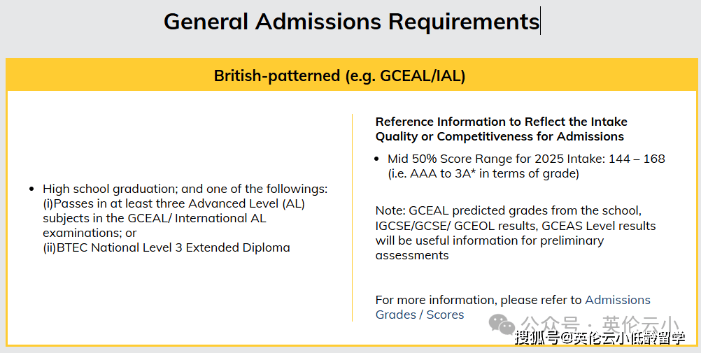 这意味着你并不需要4门完整的A-Level成绩。不过校方也明确表示,热门专业更倾向于3门AL高分(如A*A*A*)。