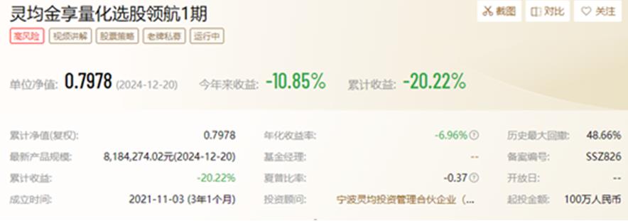 具体来看,灵均金享量化选股领航1期、灵均进取多策略L期截至到12月20日的年内收益率分别下跌10.85%、10.17%。