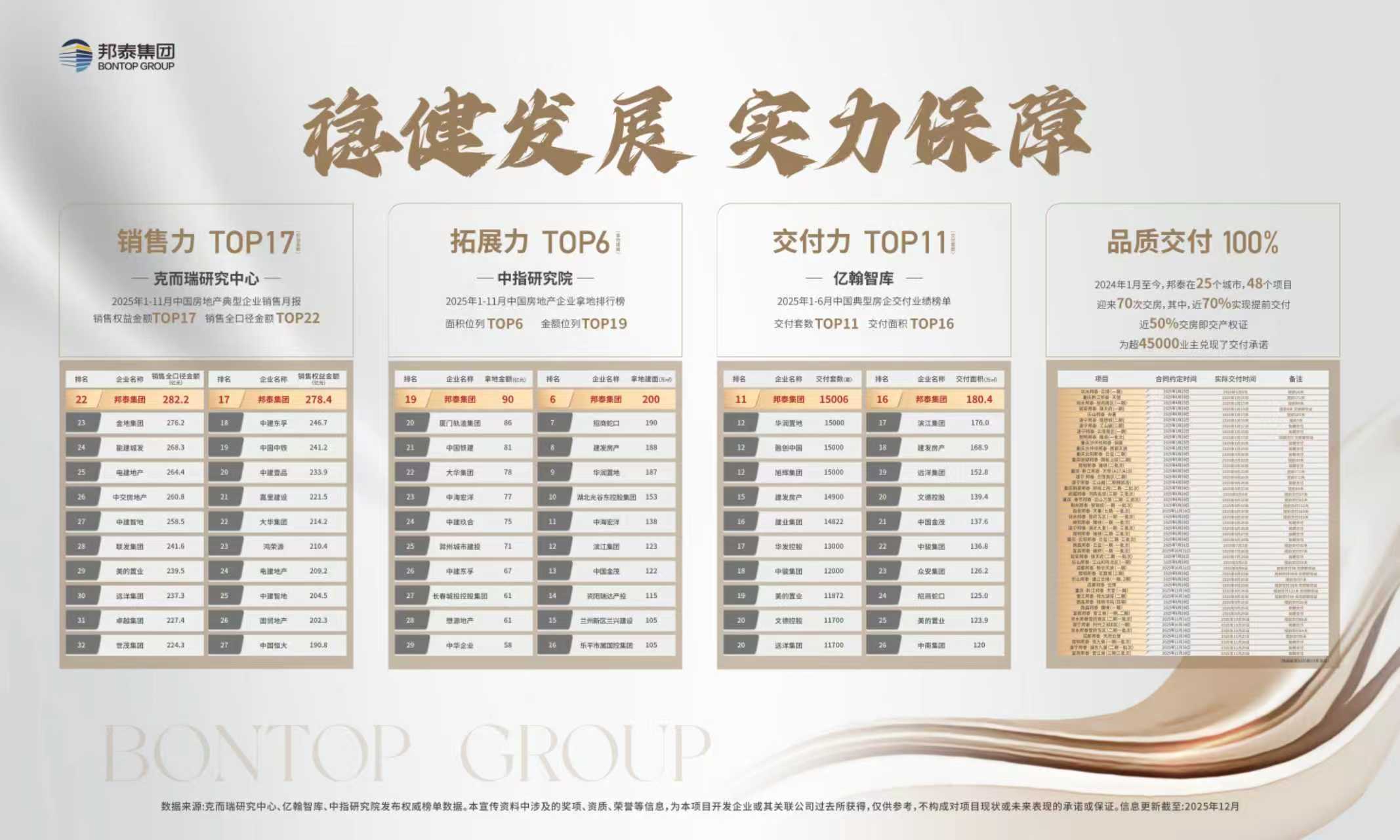领先交付力:2024年以来于25城、48个项目交付超45000户,近70%提前交付,近50%“交房即交证”。