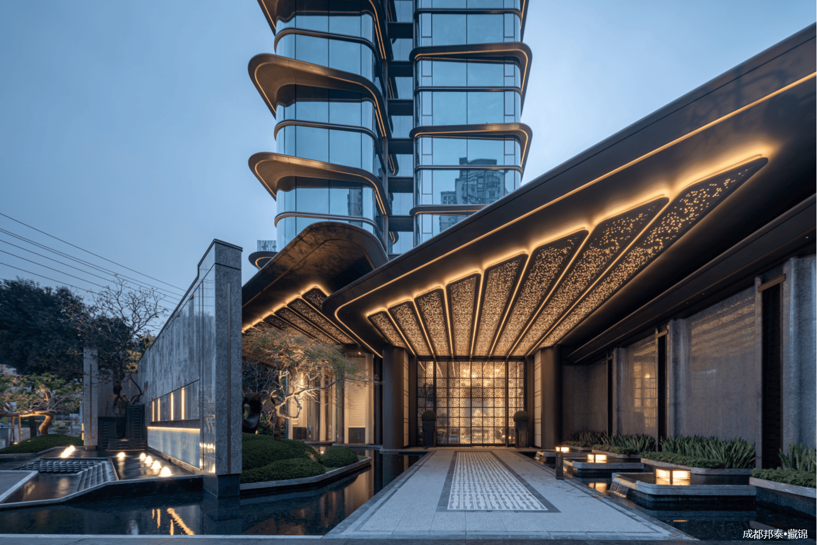 打造区域罕见的「环绕式水上会客厅」,以约700㎡水景串联超1000㎡水上会客空间。