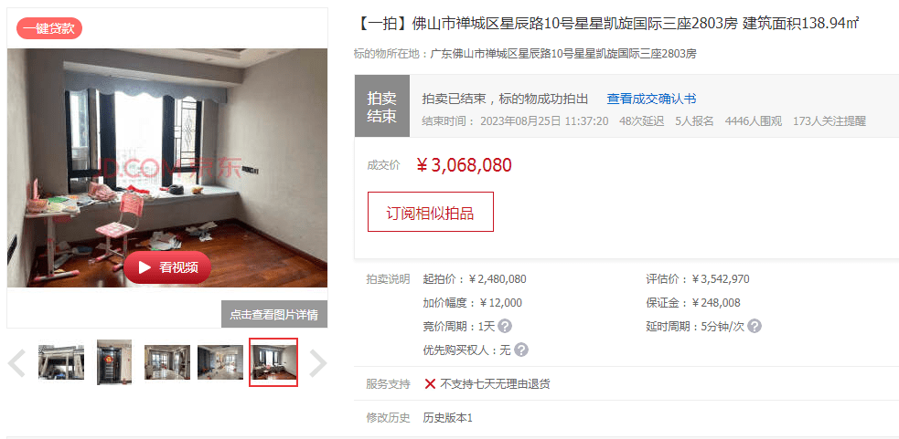 资料显示,拍卖房源位于星星凯旋国际三座2803房,房屋建筑面积138.94㎡,套内建筑面积111.06㎡,登记日期2019-01-30;土地/房屋用途:城镇住宅用地(住宅)/住宅;土地使用期限:2011-10-01起,2081-10-01止。为成交标的,法院负责交付。